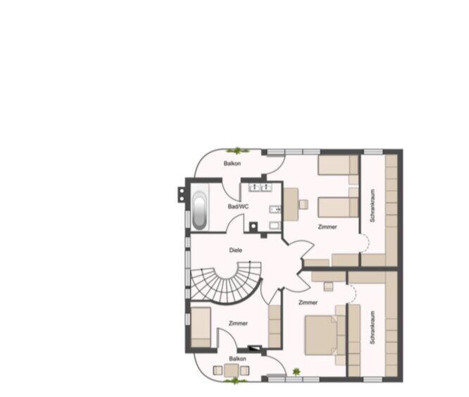 Drie slaapkamers (waarvan 2 met kleedkamer), badkamer met ligbad, wc en bidet, overloop. Balkons aan oost- en westzijde.